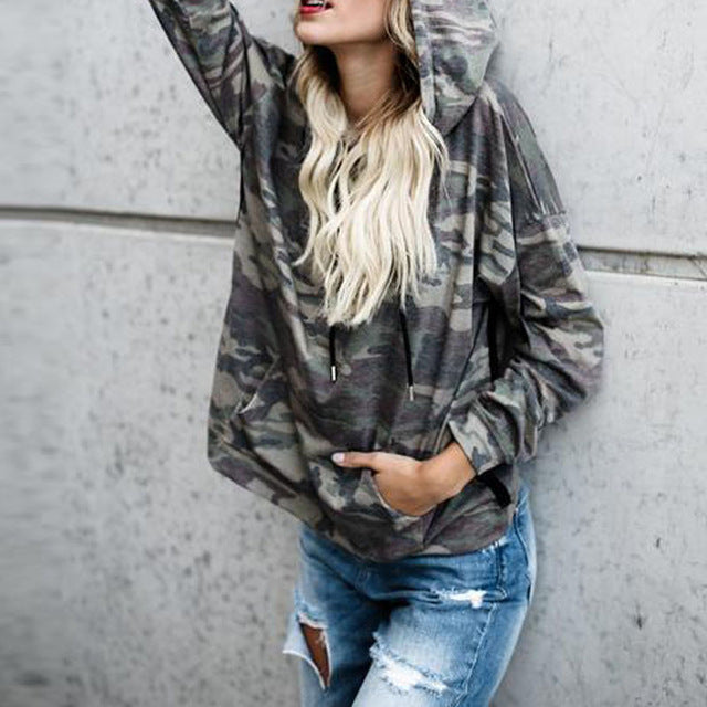 2017 Fashion Women Hooded Long Sleeve Pockets Drawstring Casual Sweatshirt Camouflage Print Loose Streetwear Pullover Top Blusas